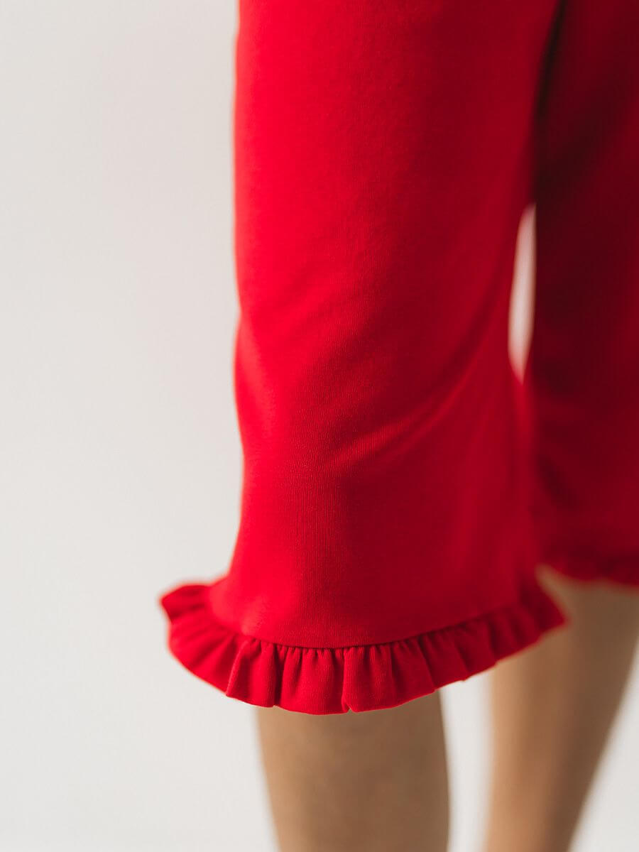 Бриджи «Red Ruffles» от российского бренда «Радужный Хлопок» — комфорт и стиль для вашей девочки! Изготовлены из мягкого кулира (95% хлопка, 5% эластана), они подарят коже нежное прикосновение и свободу движений. Подойдут для любого сезона благодаря плотности 160 г/м² и универсальному дизайну. Подходит детям размером от 104 до 152 см – удобно и практично для вашего гардероба!