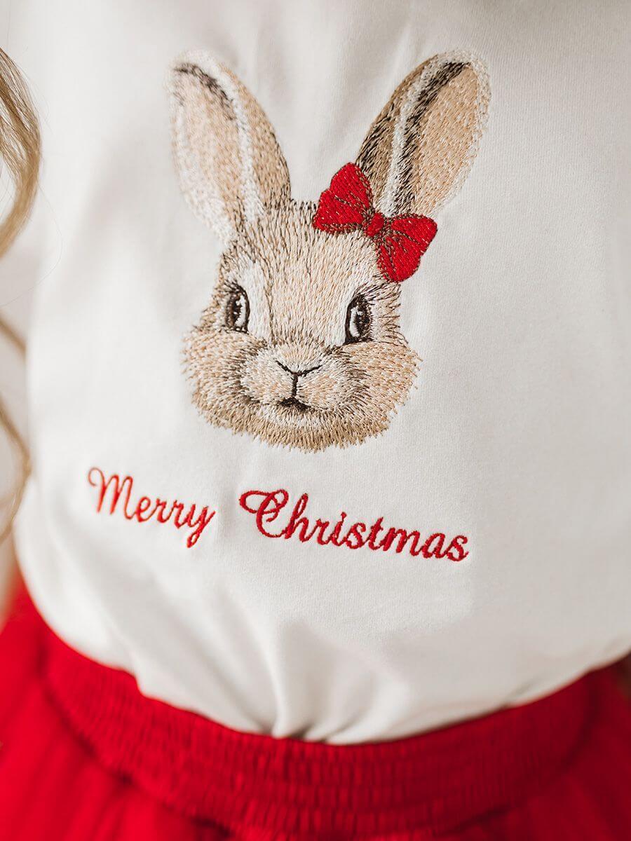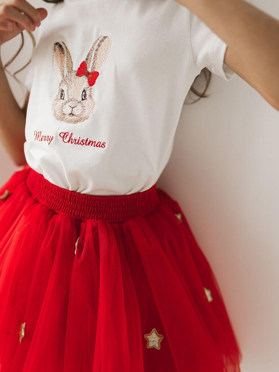 Футболка «Christmas Rabbit» от российского бренда «Радужный Хлопок» — выбор для стильной девочки! Изготовлена из качественного материала (95% хлопка, 5% лайкры), который обеспечивает комфорт даже при длительном ношении. Подходит для любого сезона и легко сочетается с другими элементами гардероба. Элегантная простота дизайна подчеркнет индивидуальность вашего ребенка. Размерный ряд 104–152 .