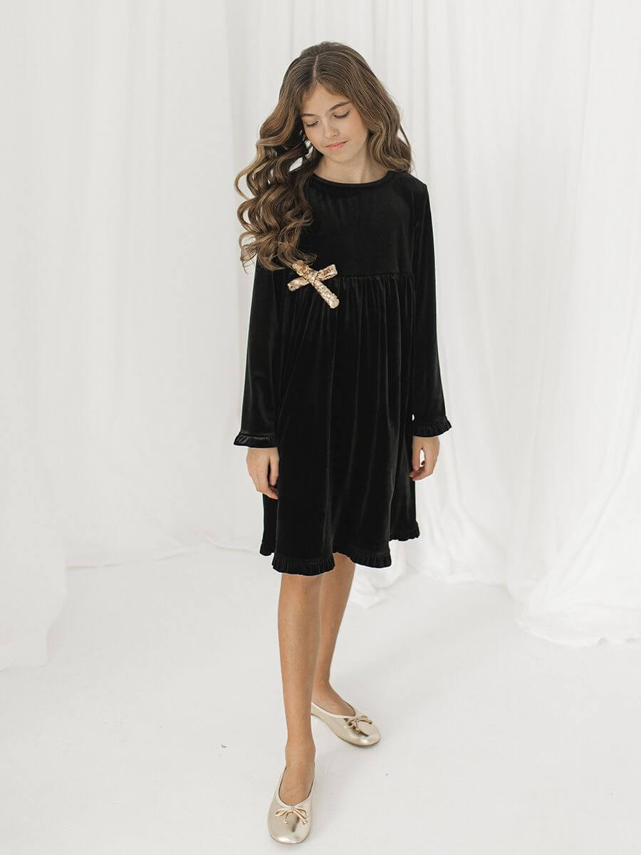 Платье «Black Velvet» от российского бренда «Радужный Хлопок» — элегантное решение для вашей модницы! Изумительный бархат (95% хлопка и 5% эластана) приятен к телу и долговечен. Длинные рукава делают его комфртным для прохладной погоды и межсезонья. Стильный черный цвет подходит ко всему гардеробу – удобно и практично! Подходит детям ростом от 104 до 152 см.