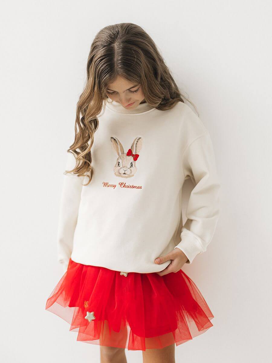Свитшот «Christmas Rabbit» от российского бренда «Радужный Хлопок» — это комфорт и стиль для вашей дочери! Издело из мягкого футера (95% хлопка + 5% лайкры), плотностью 320 г/м², подходит для любого сезона. Длинные рукава обеспечивают тепло и удобство при носке. Удобен как в повседневной жизни, так и в качестве уютного праздничного образа – ваш выбор, который согреет и порадует девочку!