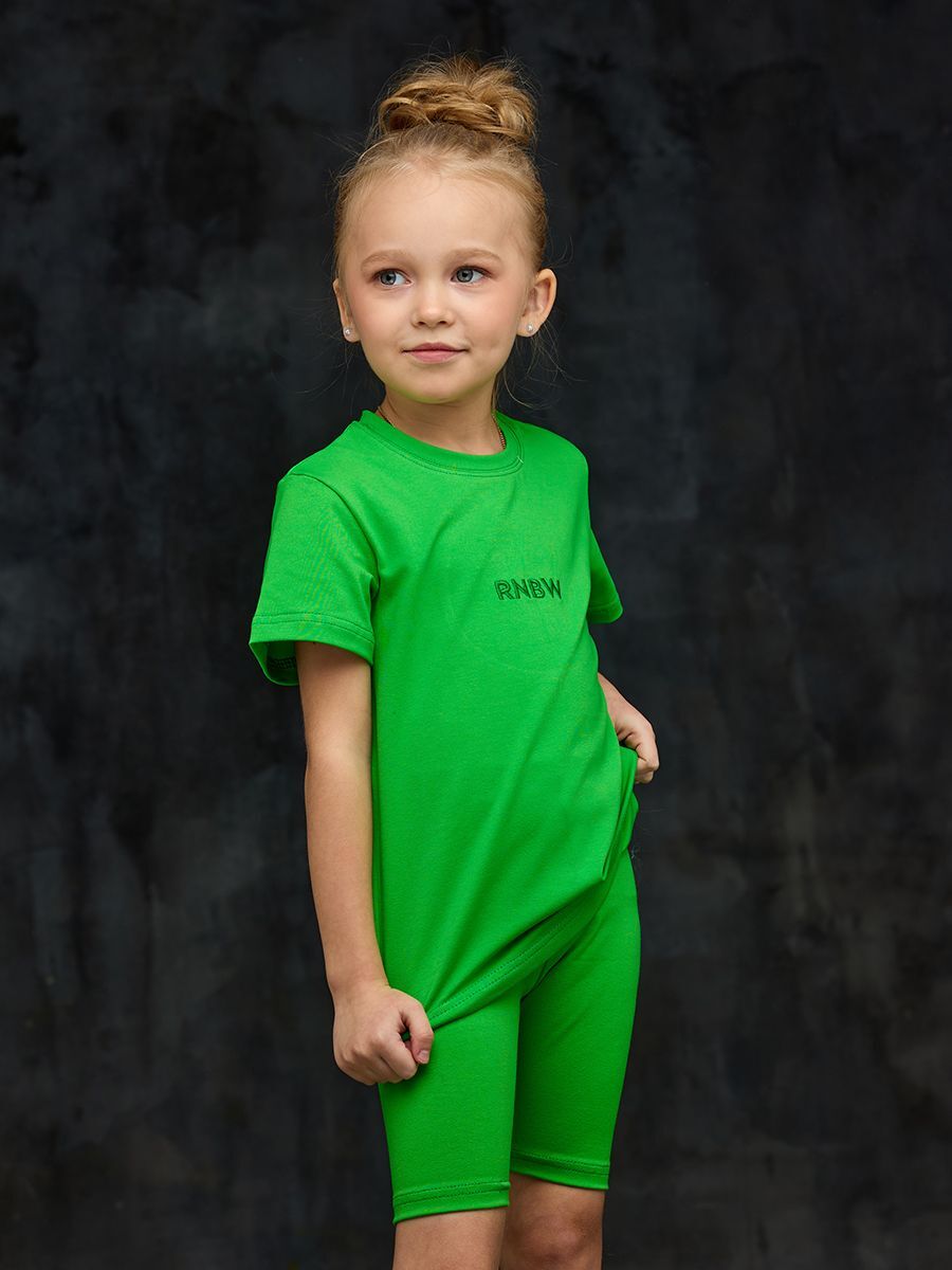 "Комплект" - сочетание комфорта и стиля для вашей девочки! Футболка с коротким рукавом и велосипедки из кулира с лайкрой обеспечат ей удобство на протяжении всего дня. Однотонный зеленый цвет подчеркнет ее нежность. Вышивка добавит шарма. Подходит для девочек от 2 до 14 лет, ростом от 92 до 164 см. Набор "Комплект" - это не только модно, но и практично!
