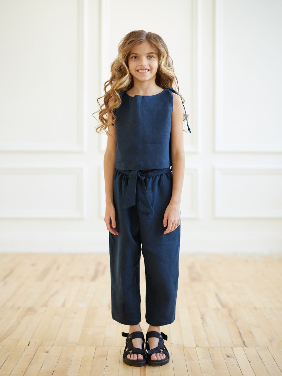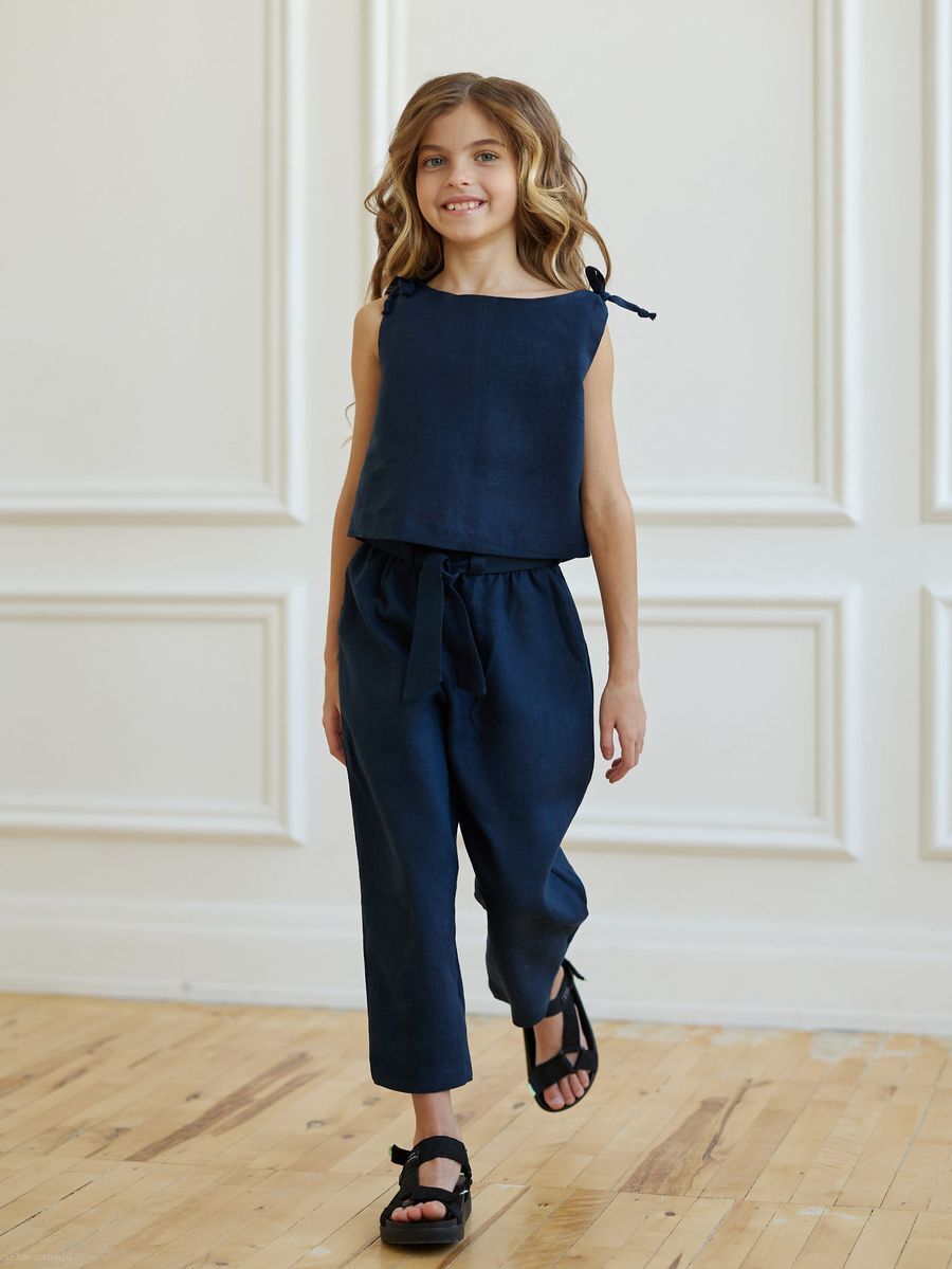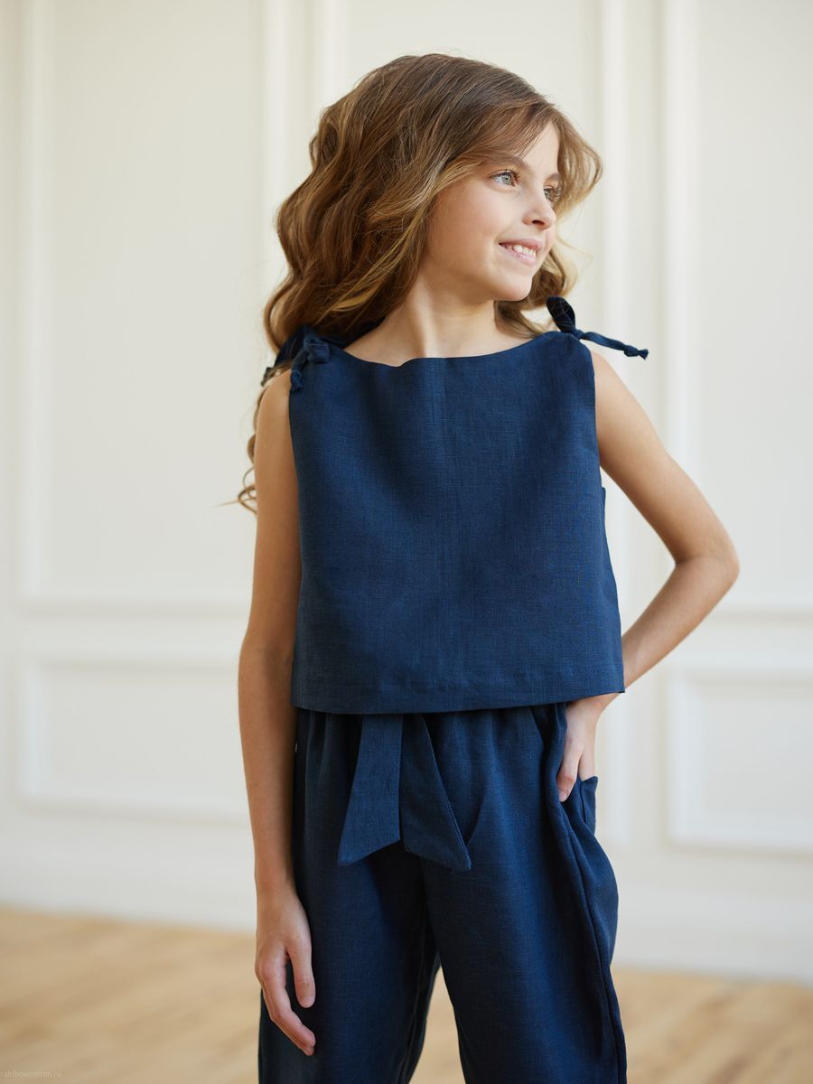 Комплект из умягченного премиального льна в темном синем цвете для девочек состоит из топа на завязках и свободных брюк. Топ имеет открытые плечи и завязки, что позволяет регулировать его посадку. Свободные брюки с декоративным карманом в виде сердечка и поясом на завязках обеспечивают удобную посадку. Подходит на рост от 92 см до 134 см (возраст от 2 до 9 лет) Умягченный лен очень приятен к телу и позволяет чувствовать себя комфортно и свободно в жаркие дни. Радужный Хлопок™ использует в производстве умягченный лён, который обработан по инновационной технологии: максимально смягченное полотно с сохранением структуры и прочности. Наш лён гипоаллергенный, легкий и приятный на ощупь. Обратите внимание, что цвет может незначительно отличаться из-за особенностей цветопередачи вашего экрана.