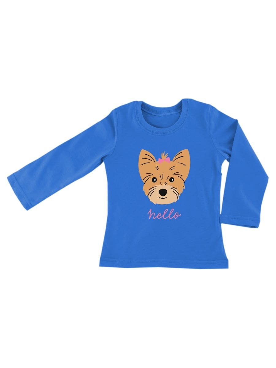 Лонгслив от бренда Радужный Хлопок! Изготовлен из качественного кулира с добавлением лайкры, обеспечивая комфорт и свободу движений. Однотонный узор с принтом собачки придется по вкусу девочкам от 3 до 10 лет. Плотность ткани 160-180 гр позволит носить его на любой сезон. Приятная цветовая гамма василькового цвета подчеркнет индивидуальность . Доступные размеры: от 98 до 140 см роста.