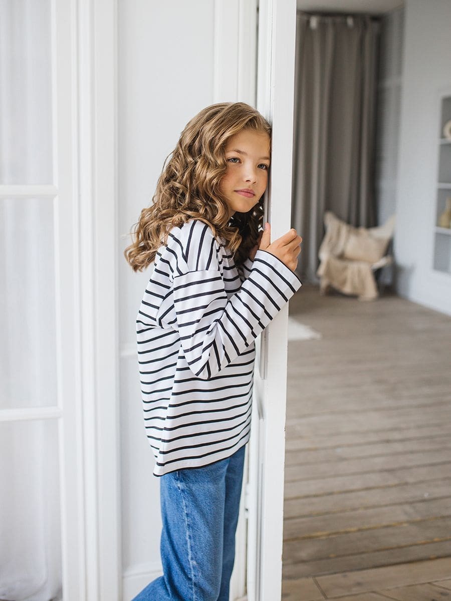 Лонгслив для девочки Nautical Black от бренда Радужный Хлопок изготовлен из кулира с добавлением лайкры, что обеспечивает комфорт и свободу движений. Стильный узор в полоску подчеркнет индивидуальность. Высокое качество материала и яркий дизайн делают этот лонгслив незаменимым в гардеробе на любой сезон. Доступны размеры от 98 до 152 см, подходят детям от 3 до 12 лет.