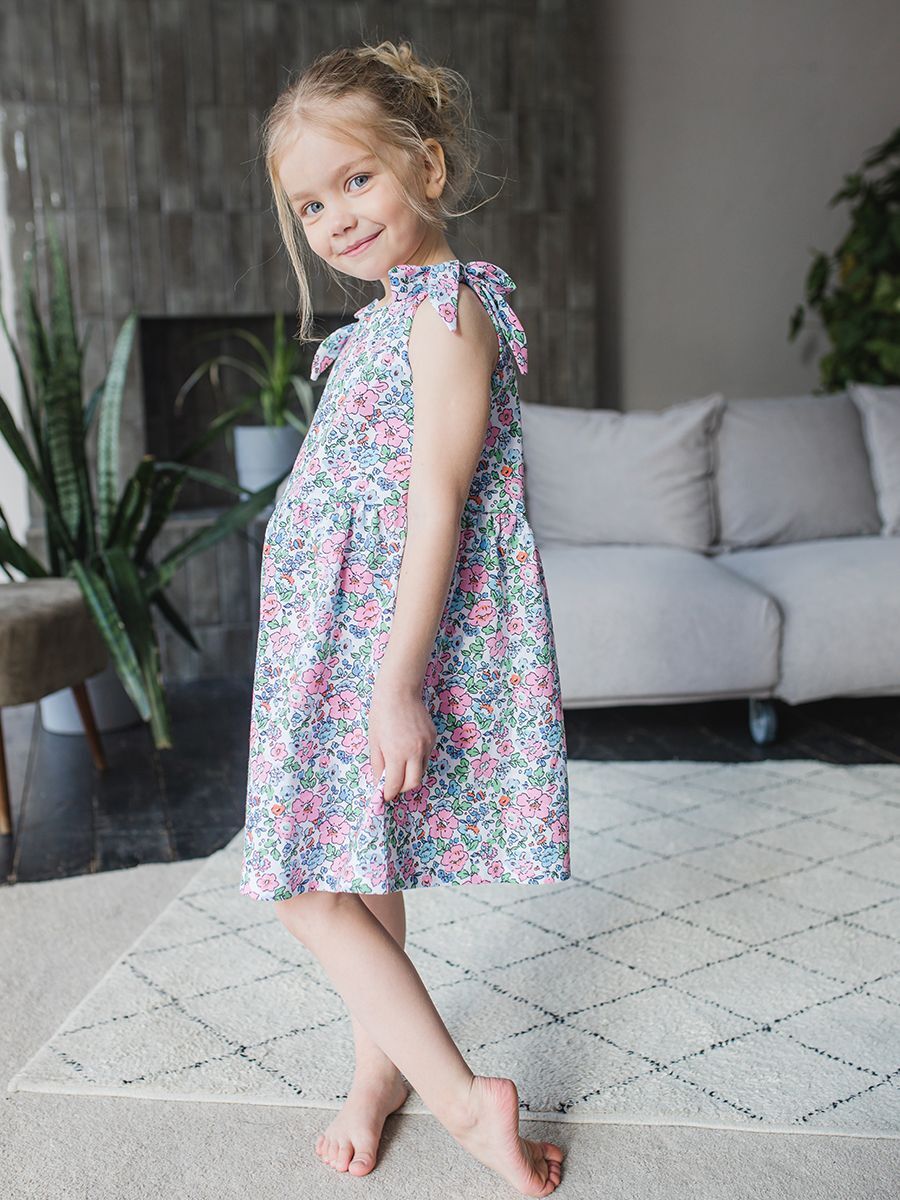 Прекрасное цветочное платье от бренда Радужный Хлопок из 100% хлопка. Идеально подойдет девочкам от 3 до 10 лет (рост от 98 см до 140 см). Платье очень удобное и легкое, подходит для любого времени года. Произведено в России, имеет яркий цветочный узор.