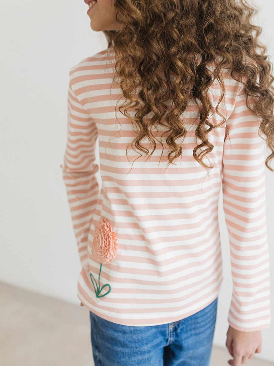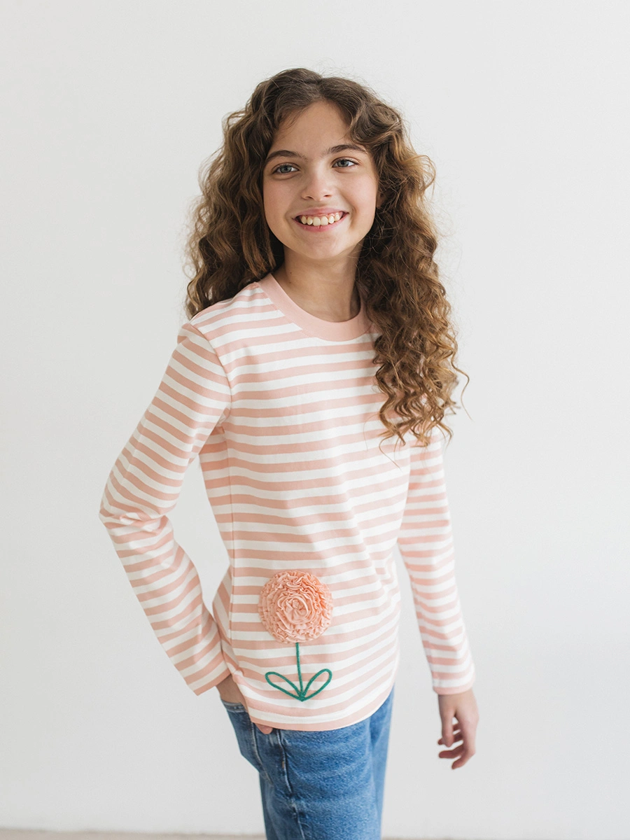 Лонгслив "Peach Stripe Flower" от бренда «Радужный Хлопок» — стильный выбор для маленькой модницы! Удобная длина рукава и мягкий материал обеспечат комфорт в любое время года. Эластичный трикотаж дарит свободу движений и сохраняет форму после стирки. Оригинальные полосы украсят образ вашей принцессы и подчеркнут её индивидуальность. Идеален как для прогулок, так и для повседневной носки. Вдохните цвет и уют вместе с лонгсливом от российского производителя!