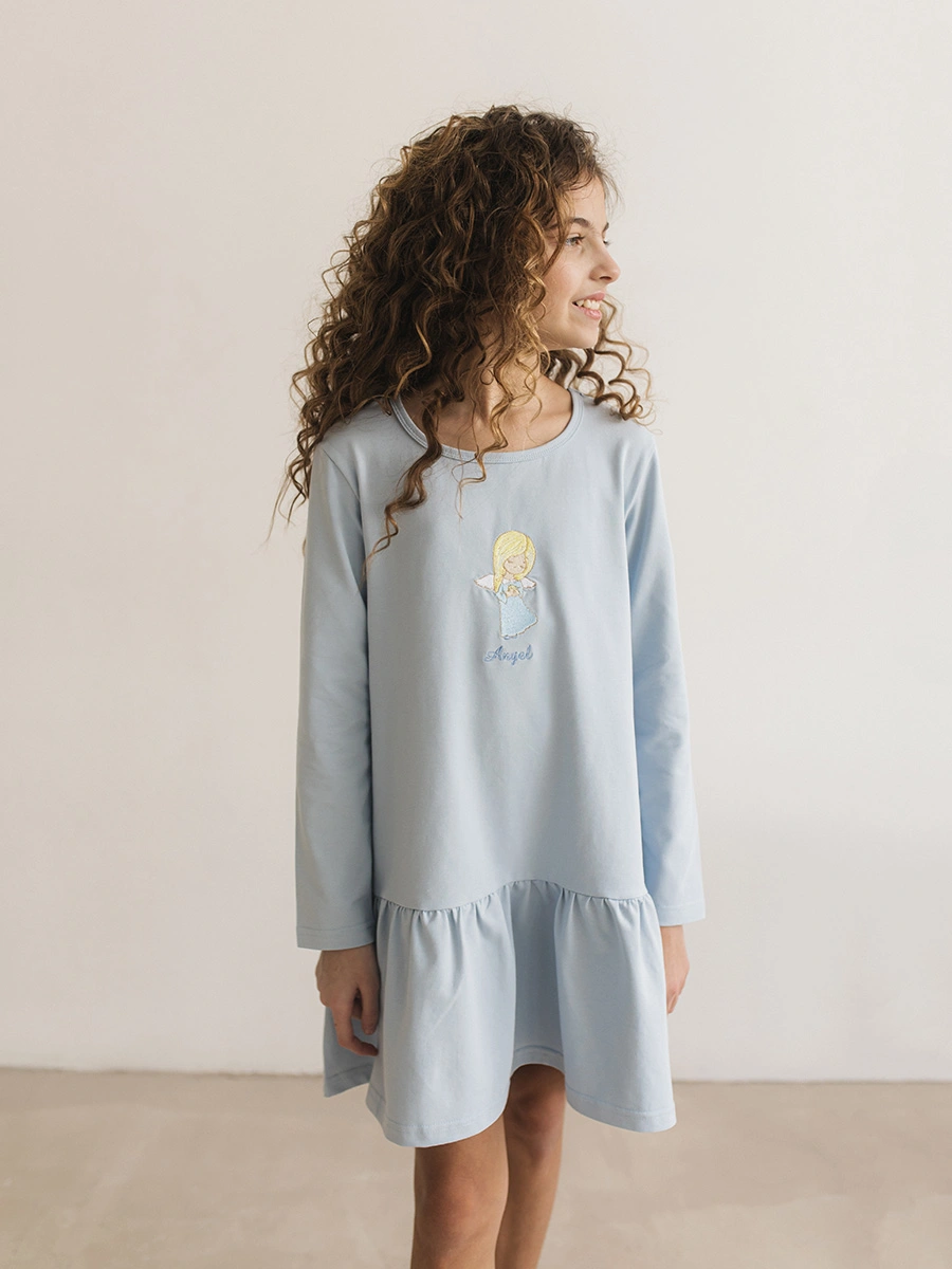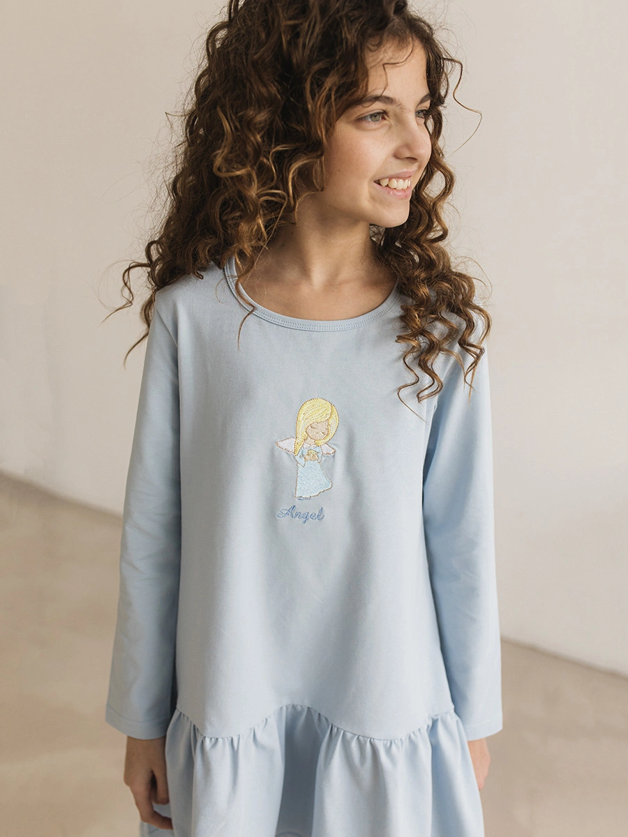 "Голубая ангелочка" из коллекции "Весна 2026", созданного российским брендом "Радужный Хлопок". Подчеркните естественную красоту и очарование вашего ребенка, выбрав это универсальное платье. Идеально сочетает в себе качество материалов, практичность покроя и элегантность исполнения.