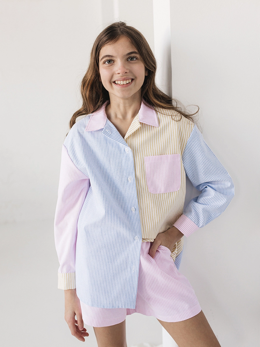 Pink Coast — это лёгкие летние шорты в нежной розовой полоске, которые удобно носить каждый день. Модель выполнена из приятной к телу ткани 50% хлопок / 50% лён (плотность 160 г): материал дышит, быстро сохнет и комфортен даже в жару. Свободная посадка не сковывает движения — ребёнку удобно бегать, кататься на велосипеде и играть на площадке.