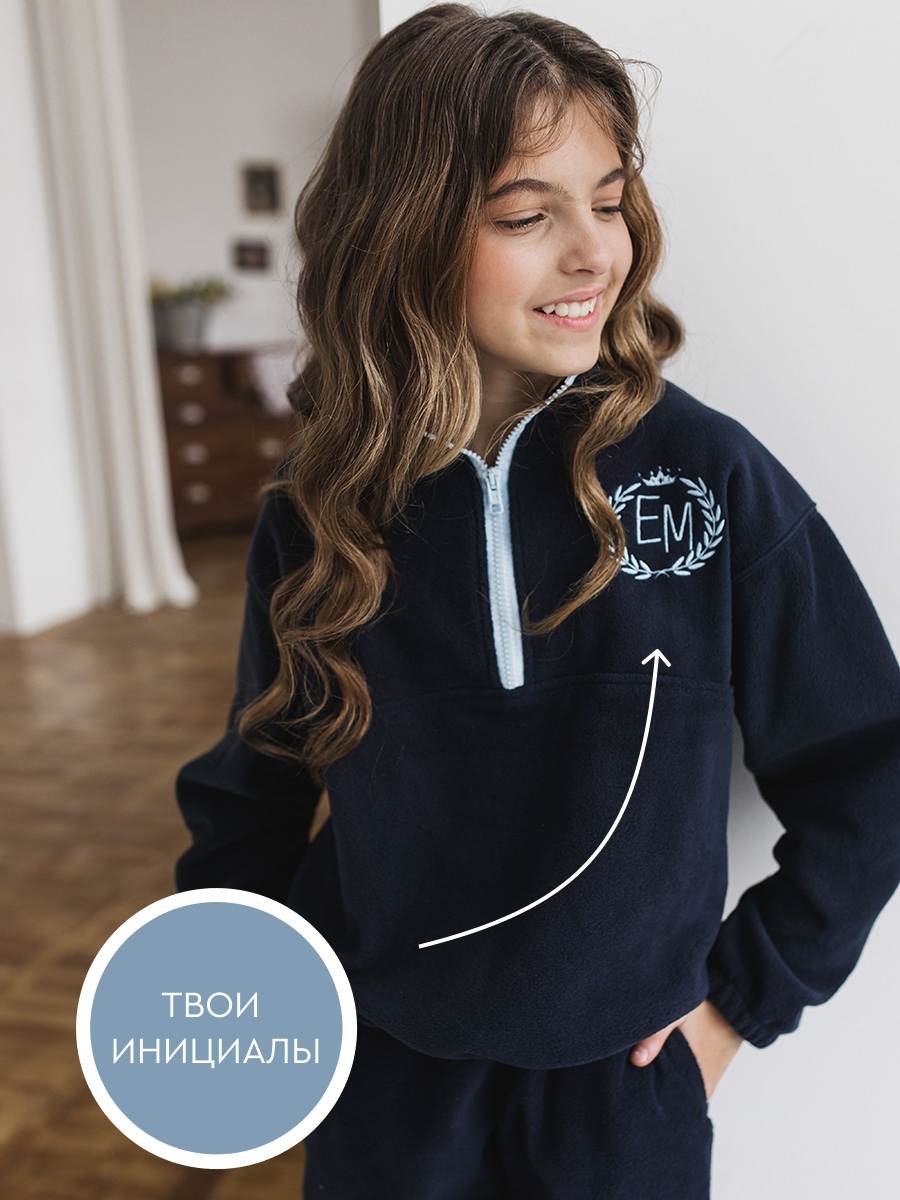 Свитшот «Dark Blue Fleece» от российского бренда «Радужный Хлопок» — стильный выбор для юных модниц! Он выполнен из мягкого флиса (100% ПЭ), плотностью 160 г/м², что обеспечивает комфорт даже в прохладную погоду. Однотонное исполнение темно-синего цвета легко сочетается с другими элементами гардероба. Индивидуальная вышивка . Размерный ряд 110–158 подойдет девочкам подросткового возраста. Удобно и тепло – ваш ребенок будет выглядеть стильно каждый день!