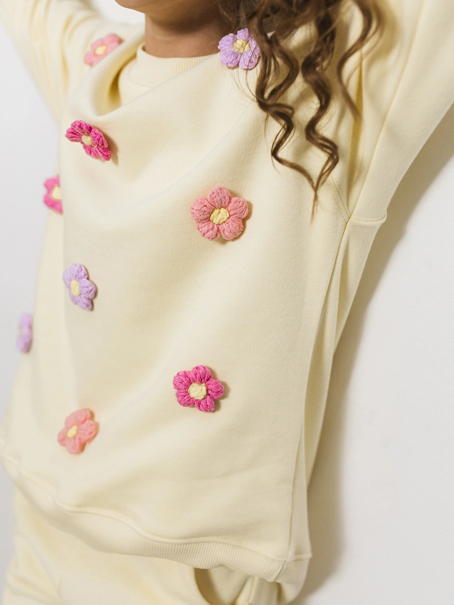 ">Погрузитесь в мир нежных оттенков вместе со свитшотом "Lemon Flowers" от бренда «Радужный Хлопок»! Элегантные цветочки украшают модель, придавая ей особую женственность и очарование. Этот универсальный аксессуар станет любимой вещью каждой маленькой принцессы благодаря мягкости материалов, идеальному крою и практичности – он согреет зимой и будет комфортен летом. Носите с гордостью стиль и уют российского качества!