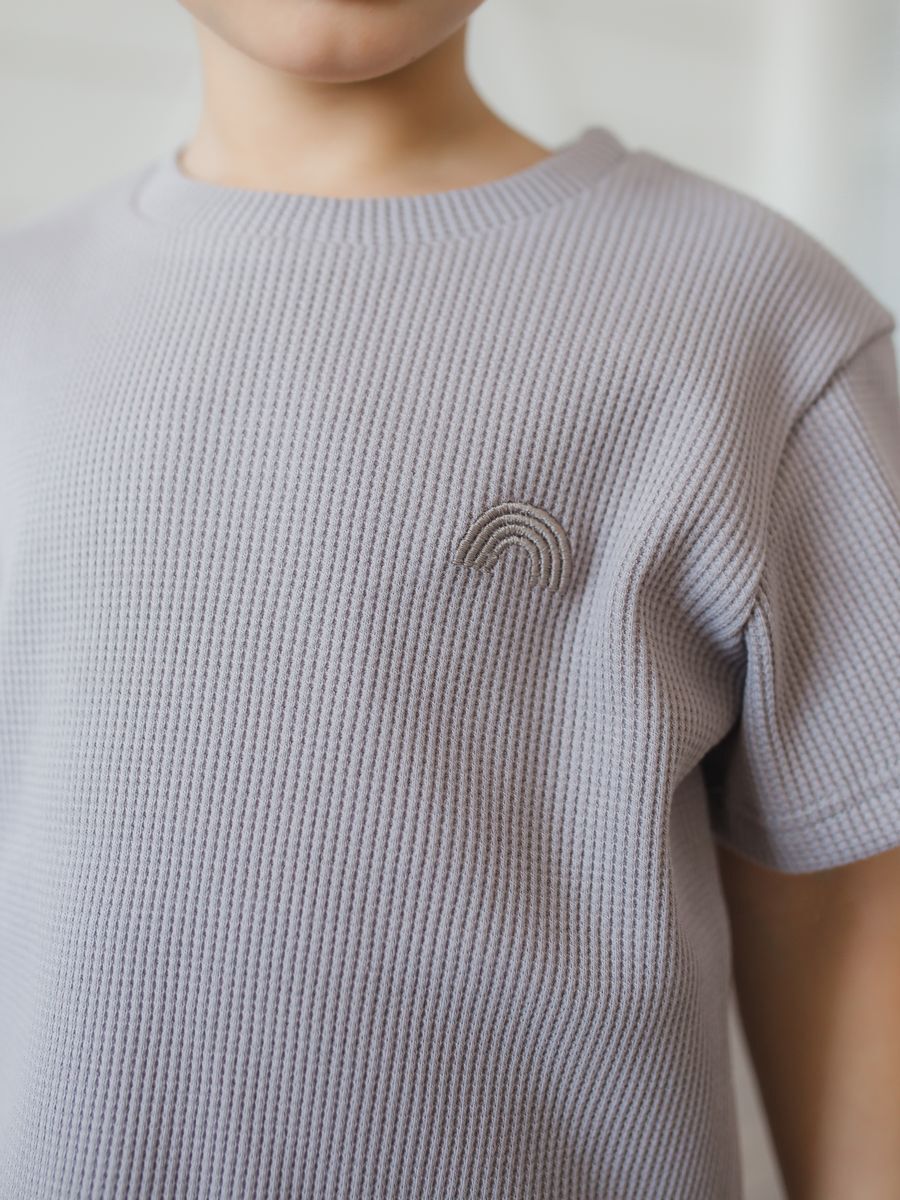 Футболка от бренда Радужный Хлопок! Эта футболка изготовлена из высококачественного материала - вафли, который приятен к телу. Она подойдет детям от 3 до 12 лет (рост от 92 см до 128 см) и имеет короткий рукав и однотонный дизайн делает эту футболку универсальной для любого повода.