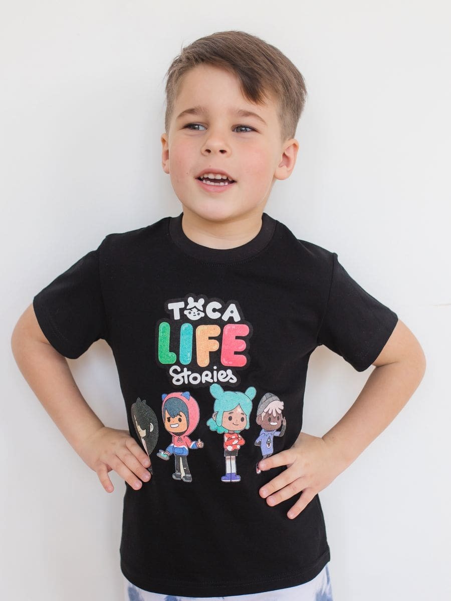 Футболка от бренда Радужный Хлопок! Изготовлена из 100% хлопка, она обеспечит комфорт и удобство вашему ребёнку. Однотонный черный цвет подойдет к любому гардеробу, а игровой принт добавит яркости. Подходит для детей от 4 до 12 лет, размеры с 104 по 152 см.