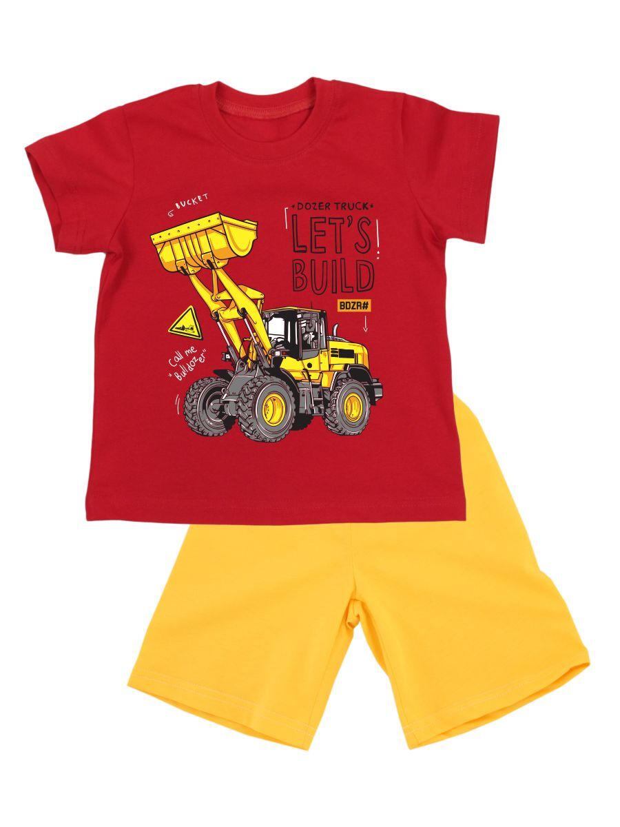 Яркий комплект Let‘s Build из футболки и шорт выполнен из кулира высокого качества. Стойкий принт выдерживает большое количество стирок и не выгорает. Футболка имеет классический крой и круглый отстроченный вырез горловины, что не позволяет ей растягиваться со временем, на рост от 104 см до 140см. Шорты выполнены в однотонном желтом цвете и имеют эластичный пояс на талии, что обеспечивает комфортную посадку. Отличный выбор для городских прогулок, детского сада и отдыха на море.