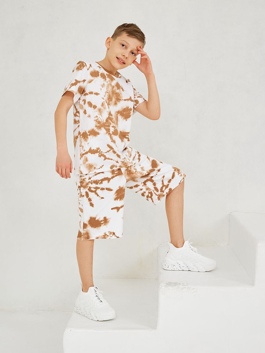 Шорты в цвете песочный тай-дай - это яркий и стильный выбор для летнего гардероба. Они выполнены из футера (100% хлопок) - легкого и дышащего материала, который обеспечивает комфорт и свободу движений. На рост от 98 см до 152 см. Шорты имеют удобную посадку на широкой эластичной резинке. Они отлично подойдут для активного образа жизни. Можно дополнить образ худи и джоггерами в цвете песочный тай-дай из коллекции Радужного Хлопка