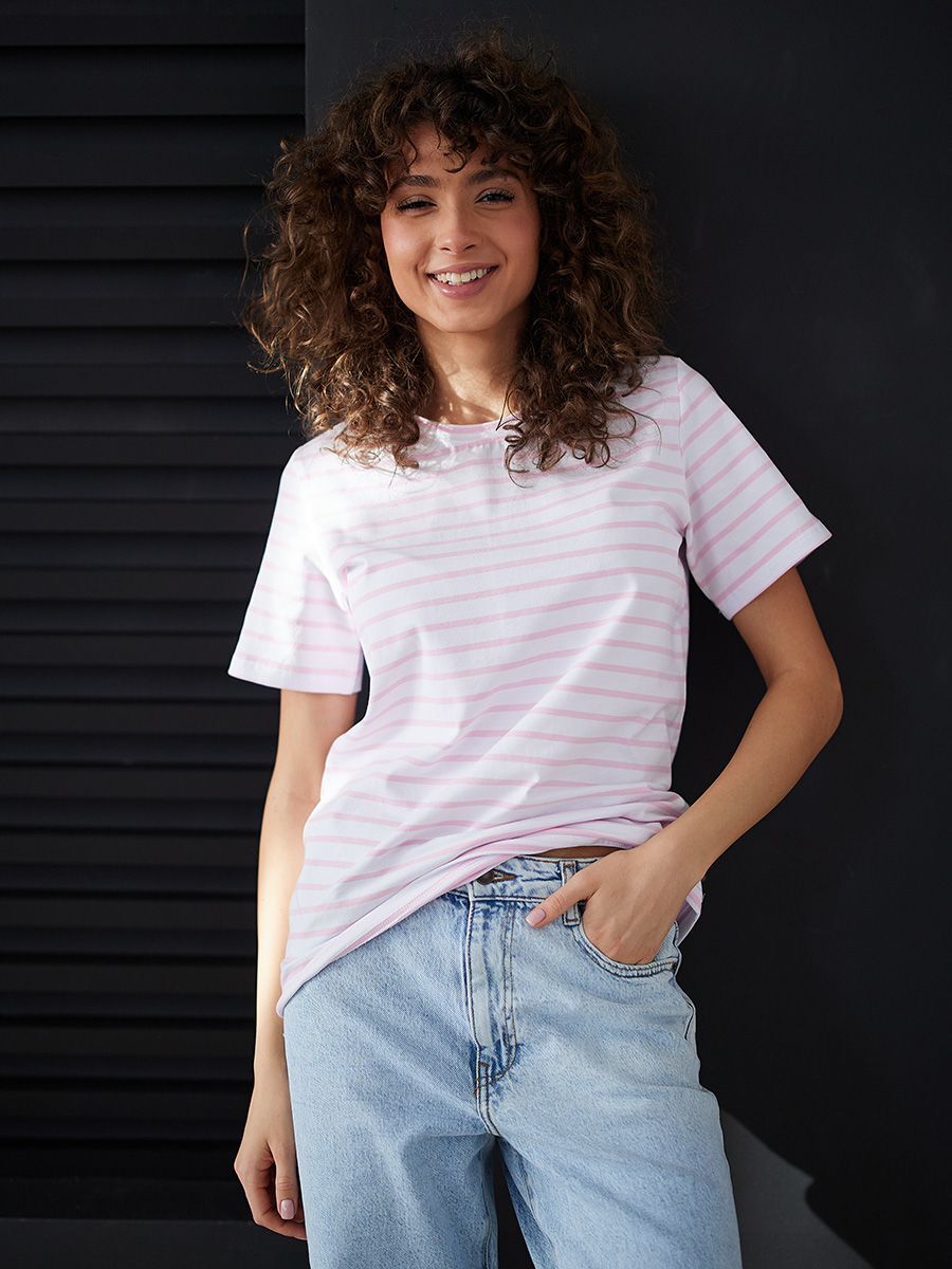 Женская футболка "Sea Days" от бренда Радужный Хлопок изготовлена из качественного кулира с добавлением лайкры для комфортной посадки. Уникальный узор в виде полоски придает особый шарм этой модели. Подходит на любой сезон благодаря плотности материала 160-180гр. Почувствуйте свежий морской бриз с футболкой "Sea Days"! Успейте приобрести свой размер от XS(42) до XL(50).