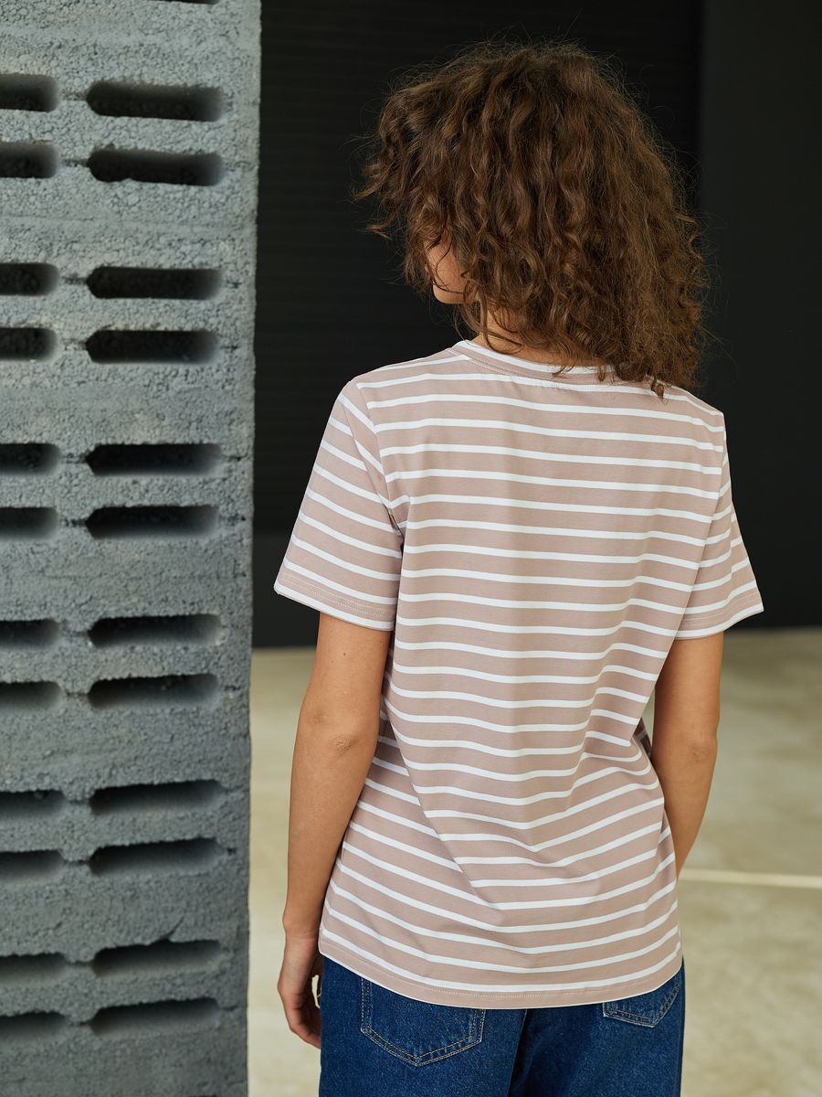 Женская футболка Sea Days Brown - отличный выбор для стильного летнего гардероба! Комфортный материал из хлопка с добавлением лайкры обеспечит отличную посадку. Универсальная полоска подойдет к любому образу. Доступные размеры от XS(42) до XL(50) позволят подобрать идеальную посадку для каждой девушки. Почувствуйте комфорт и стиль с этой модной футболкой!