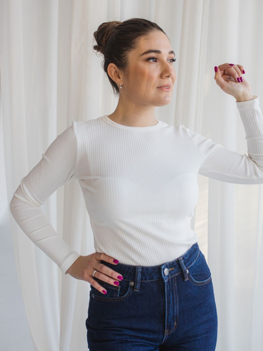 Лонгслив молочного цвета из ткани лапша – важный базовый элемент вашего гардероба. Изделие отлично тянется, красиво облегает и подчеркивает фигуру. Носите лонгслив с джинсами и юбками, с пиджаками и блейзерами. Добавьте яркий аксессуар к изделию и модель засияет в новом свете. Классический белый оттенок изделия отлично сочетается с другими цветами вашей одежды.