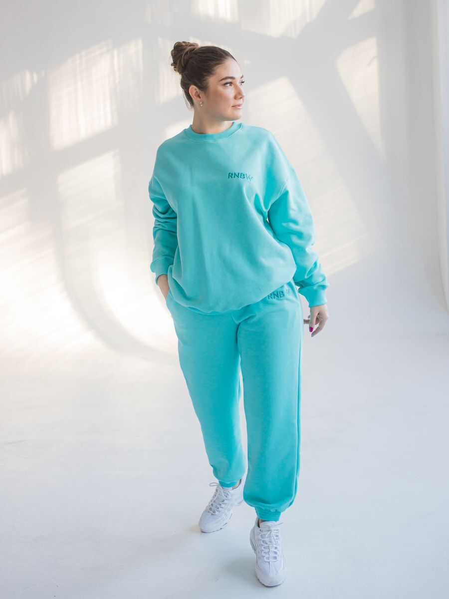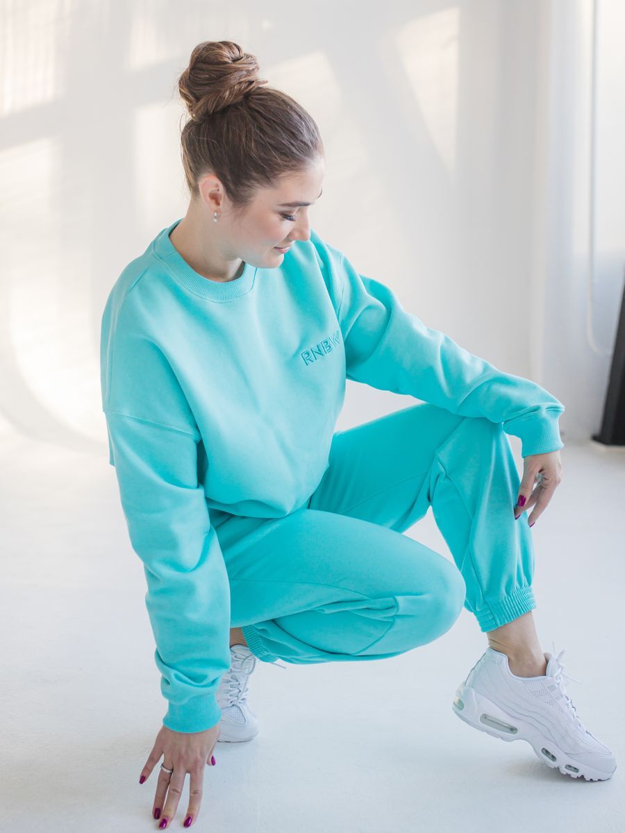 Ментоловый свитшот единого размера – вещь, обязательная к приобретению в этом сезоне. Модный цвет привлекает взгляды, свободный покрой дарит комфорт и удобство. Носите это элемент одежды в спорт зал, на прогулку и на отдых. Свитшот идеально сочетается не только с джоггерами, но и с джинсами, шортами, спортивными юбками.