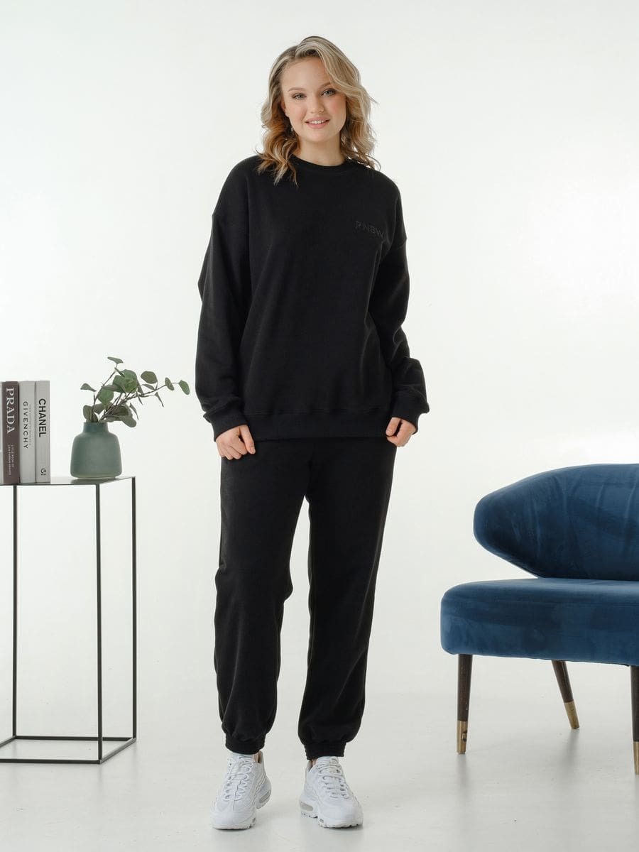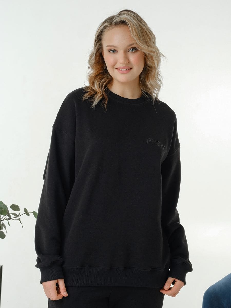 Свободный свитшот черного цвета – такая модель должна быть в гардеробе каждой современной женщины. Идеальный покрой не сковывает движений. Изделие отлично подходит для занятий спортом, отдыха и прогулок. Не забудьте взять наш свитшот с собой в отпуск – он прекрасно выручит вас прохладными вечерами благодаря плотности и натуральности ткани с высоким содержанием хлопка. Размер: one size (единый).
