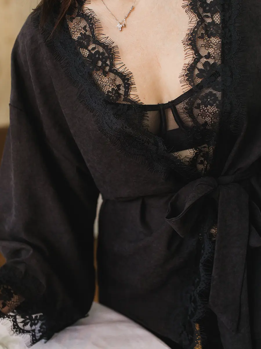 Идеально в качестве домашнего халата, утренней накидки, на пляж или после душа. Добавьте кружевное бельё или топ – и получите шикарный вечерний образ в стиле «тихая роскошь».