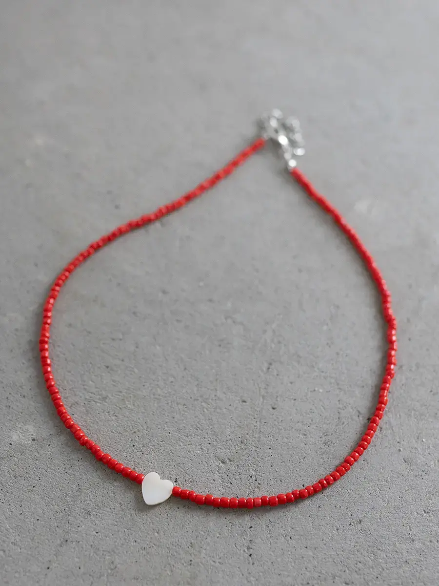 Колье Flame & Wind Heart – изысканное украшение из красного бисера с белым перламутровым сердцем. Оно подчеркнёт индивидуальность и станет ярким акцентом в вашем образе.