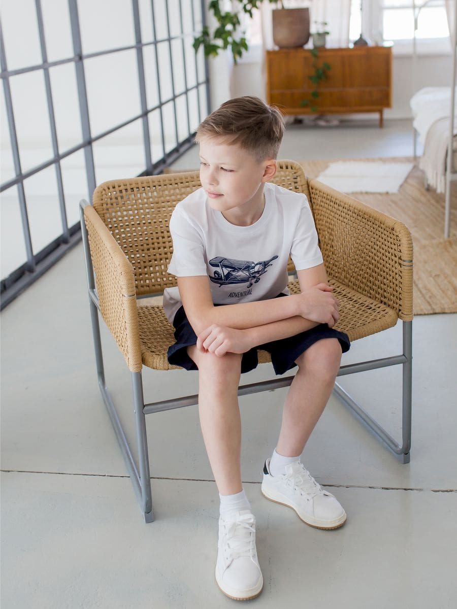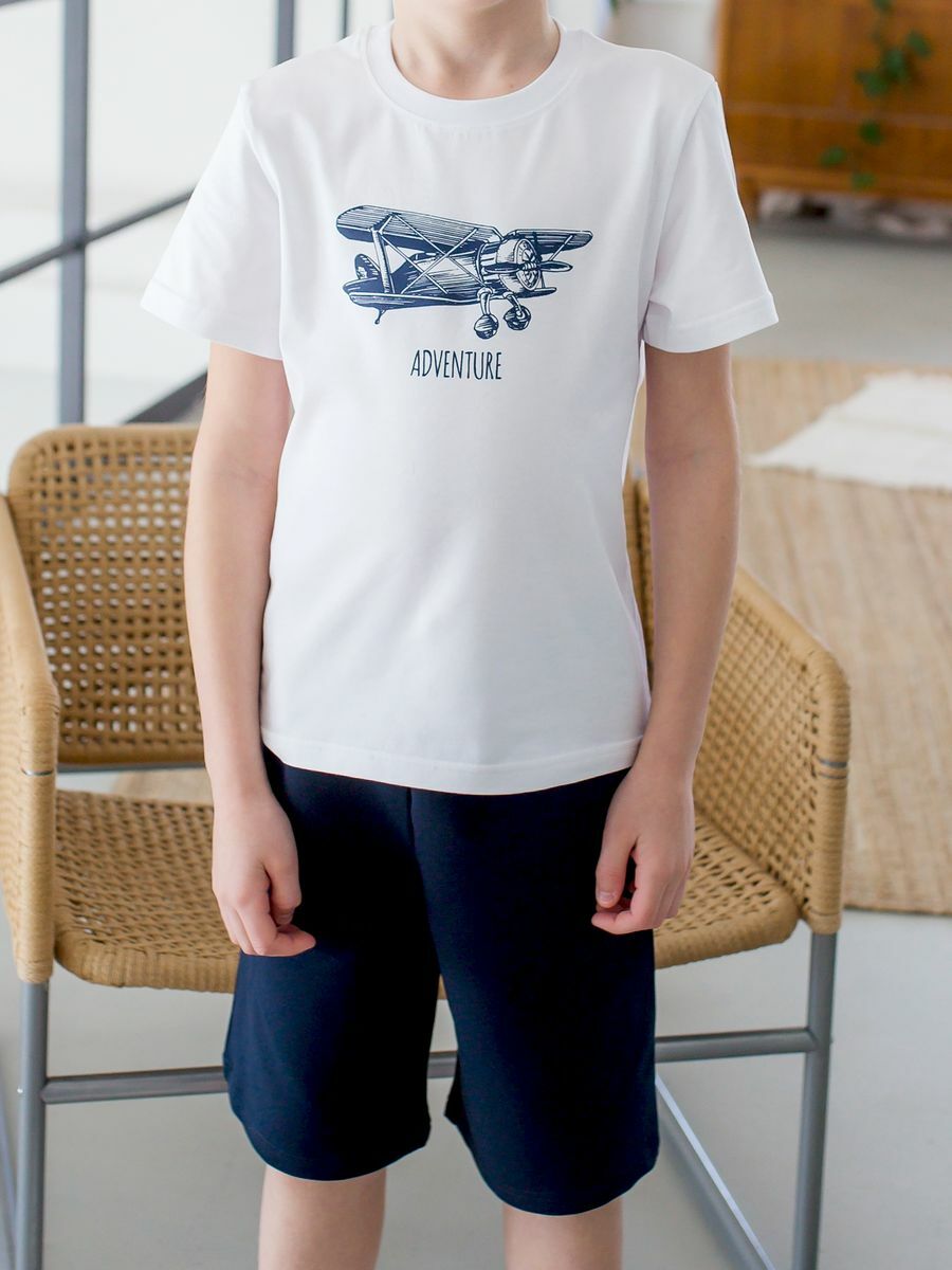 Футболка от бренда Радужный Хлопок! Изготовлена из качественного кулира, состав - 100% хлопок. Однотонный дизайн с принтом самолета понравится любому ребенку. Универсальный короткий рукав подойдет для активных игр и занятий спортом. Подходит для возраста от 4 до 10 лет, размеры доступны от 104 см до 140 см. Купив эту футболку, вы обеспечите комфорт и стиль вашему ребенку!
